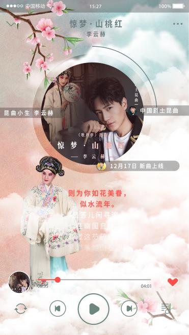 12月17日,李云赫最新专辑《惊梦·山桃红》于QQ音乐、网易云音乐、酷我音乐、酷狗音乐等平台同步上线,包含两首单曲《惊梦·山桃红Ⅰ》和《惊梦·山桃红Ⅱ》。新歌节选自昆曲《牡丹亭》中的经典唱段《惊梦·山桃红》,在保留原歌词的基础上重新编曲,融入爵士钢琴、大提琴等西洋乐器元素,李云赫用婉转唱腔全新演绎柳梦梅与杜丽娘的千古爱情。